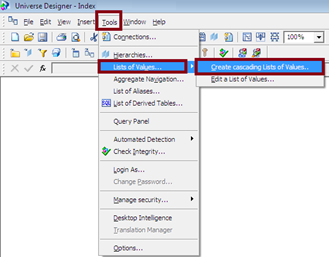 1. Go to Tools –> List of Values.. –>Create Cascading List of Values.