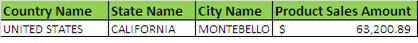 By clicking Run Query, report would return the values for USA–CALIFORNIA–MONTEBELLO.