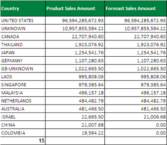 If the report refreshed Top N Value as 15, your report will show only Top 15 Country based on Product Sales Amount.