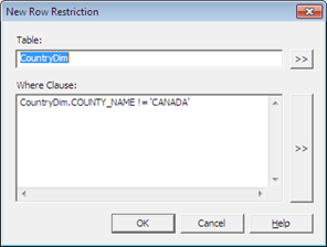 8. Click OK. Now Row select Security applied for the CS Users group and they cannot see Canada Country data into their reports. You can validate the same by checking the SQL query in the report Query panel.