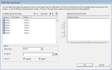 5. Click the users / group from left side and add it into right side panel and OK.