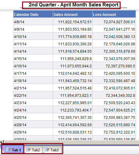 - Example -2, Refresh the report on July 01, and get the data into the report for April, May and June as separate tabs.