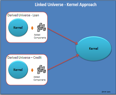 • The kernel approach, one universe contains the core components and core components can be added to the derived universe.
