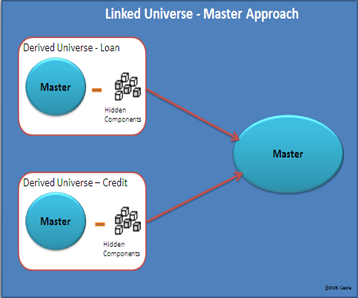 • If the linked core universe is a master universe, then the derived universe contains all the core universe components.
