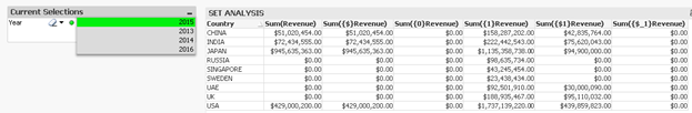 =sum({$<Country={‘INDIA’}>}Revenue)